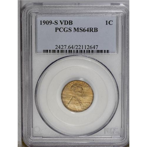 <B>1909-S VDB<1C> MS64 Red and Brown PCGS.</B></I> The obverse is generally light in color with subtle streakiness while deeper amber and mint-green splashes are found on the reverse. Well defined, as usual, with a soft, frosted finish that is also characteristic of many Uncirculated 1909-S VDB Cents. <BR><BR><B>Important notice:</B> Heritage usually auctions material at the rate of 200-250 lots per hour. On some occasions eBay Live bid software or the Internet may not be able to keep up with the pace of the auction. We recommend placing a realistic absentee bid now as insurance to avoid disappointment. Occasionally the auctioneer may eliminate or reject an eBay Live bid, and the auctioneer may also reopen a lot after the close of the eBay live bidding (usually because we missed an audience bid), and may reject your bid even if it shows you as the winning bidder. By bidding via eBay Live, you agree that Heritage may award the lot to another bidder at its sole discretion under the circumstances described above or any other reasonable circumstances. Since eBay bids are not shown to us until we open the lot on the floor, we treat those bids just like floor bids. In most cases the floor responds before the eBay bid is presented to us, due to Internet lag time, so for consistency we have made it a policy that floor bids are always considered first over tie eBay live bids. Also please note that all Heritage lots purchased through eBay Live carry a 20% Buyer's Premium. Please make sure you read the Terms and Conditions before you bid. This lot is being auctioned in conjunction with a live floor auction by Heritage Galleries & Auctioneers. All final auction and invoice information will be supplied by Heritage Galleries & Auctioneers, and all other information should be considered preliminary. Lot:594 <BR><BR><B>Winning Notification and Billing:</B> After the FINAL session in this auction is complete, Heritage will send e-mail and snail mail invoices. This process normally takes several days. All final auction and invoice information will be supplied by Heritage Galleries & Auctioneers, and all other information should be considered preliminary. <BR><BR>This auction will be conducted on a live auction floor and over the Internet through eBay Live. If you choose to place an absentee bid, please take a moment to <font color='#0000ff'><u><a href='http://pages.ebay.com/liveauctions/help/before/laabsentee.html'>learn how eBay Live absentee bidding works</a></u></font><font color='#000000'>