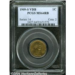 <B>1909-S VDB<1C> MS64 Red and Brown PCGS.</B></I> Well struck, with lustrous golden-brown surfaces. A few small flecks are noted over each side. This popular key-date is always in demand. <BR><BR><B>Important notice:</B> Heritage usually auctions material at the rate of 200-250 lots per hour. On some occasions eBay Live bid software or the Internet may not be able to keep up with the pace of the auction. We recommend placing a realistic absentee bid now as insurance to avoid disappointment. Occasionally the auctioneer may eliminate or reject an eBay Live bid, and the auctioneer may also reopen a lot after the close of the eBay live bidding (usually because we missed an audience bid), and may reject your bid even if it shows you as the winning bidder. By bidding via eBay Live, you agree that Heritage may award the lot to another bidder at its sole discretion under the circumstances described above or any other reasonable circumstances. Since eBay bids are not shown to us until we open the lot on the floor, we treat those bids just like floor bids. In most cases the floor responds before the eBay bid is presented to us, due to Internet lag time, so for consistency we have made it a policy that floor bids are always considered first over tie eBay live bids. Also please note that all Heritage lots purchased through eBay Live carry a 20% Buyer's Premium. Please make sure you read the Terms and Conditions before you bid. </span></font></tr></table></td></tr></table>