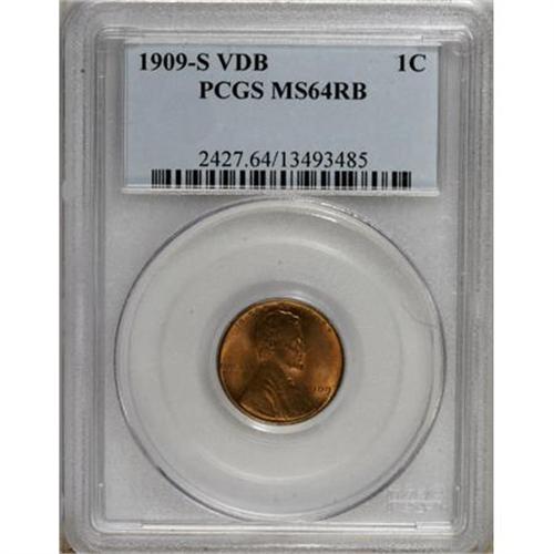 <B>1909-S VDB 1C MS64 Red and Brown PCGS.</B></I> Primarily orange-gold, but slightly mellowed in olive-tan shades. A crisply struck representative with bold VDB initials. The fields are essentially devoid of contact, although thorough evaluation locates a few pinpoint flecks. The ever-popular low mintage key date.<BR><BR><B>Coin Engraver:</B> Victor D. Brenner<BR><BR><b>Shipping:</b> Coins & Currency (<a target="_blank" href="http://www.heritageauctions.com/common/shipping.php">view shipping information</a>)