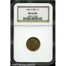1909-S VDB 1C MS65 Red NGC. While not rare in the <B>1909-S VDB 1C MS65 Red NGC.</B></I> While not rare in the absolute sense, the S VDB is certainly infrequently found with full, intact mint luster such as seen on this piece. Sharply defined and problem-free for the grade with tremendous eye appeal. <BR><BR><B>Important notice:</B> Heritage usually auctions material at the rate of 200-250 lots per hour. On some occasions eBay Live bid software or the Internet may not be able to keep up with the pace of the auction. We recommend placing a realistic absentee bid now as insurance to avoid disappointment. Occasionally the auctioneer may eliminate or reject an eBay Live bid, and the auctioneer may also reopen a lot after the close of the eBay live bidding (usually because we missed an audience bid), and may reject your bid even if it shows you as the winning bidder. By bidding via eBay Live, you agree that Heritage may award the lot to another bidder at its sole discretion under the circumstances described above or any other reasonable circumstances. Since eBay bids are not shown to us until we open the lot on the floor, we treat those bids just like floor bids. In most cases the floor responds before the eBay bid is presented to us, due to Internet lag time, so for consistency we have made it a policy that floor bids are always considered first over tie eBay live bids. Also please note that all Heritage lots purchased through eBay Live carry a 20% Buyer's Premium. Please make sure you read the Terms and Conditions before you bid. This lot is being auctioned in conjunction with a live floor auction by Heritage Galleries & Auctioneers. All final auction and invoice information will be supplied by Heritage Galleries & Auctioneers, and all other information should be considered preliminary. Lot:5210