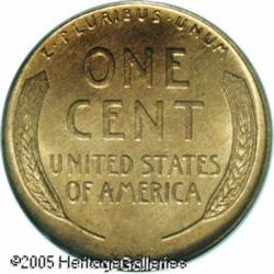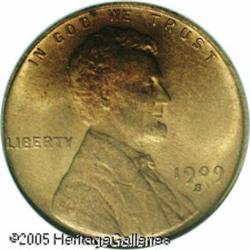 <B>1909-S VDB 1C MS65 Red PCGS.</B></I> An original orange-gold Gem with shimmering luster and a meticulous strike. Lengthy inspection beneath a glass reveals only a couple of miniscule carbon flecks, inconspicuously placed on the obverse rim at 6:30. Famous as the lowest mintage issue in the Lincoln Cent series, the 1909-S is also important as a first year, one year type, since the 'overly prominent' VDB initials were removed from the reverse exergue early in 1909. Encapsulated in a green label PCGS holder. Lot:5373