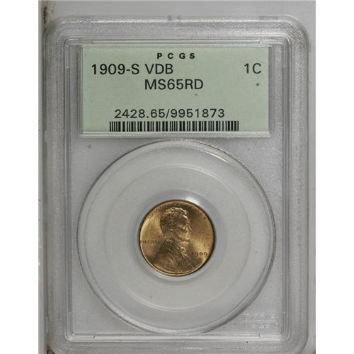 <B>1909-S VDB 1C MS65 Red PCGS.</B></I> The VDB initials are needle-sharp, as are all other aspects of this lustrous key date Gem. The unmarked fields and devices are light orange-gold with hints of olive. Minor carbon denies an even finer grade. Encapsulated in a green label holder.<BR><BR><b>Shipping:</b> Coin/Currency (<a target="_blank" href="http://www.heritageauctions.com/common/shipping.php">view shipping information</a>)