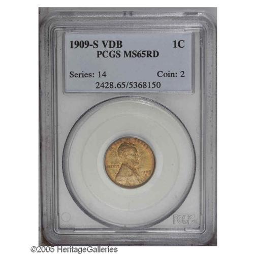 1909-S VDB 1C MS65 Red PCGS. This low mintage, first y 1909-S VDB[1C] MS65 Red PCGS.