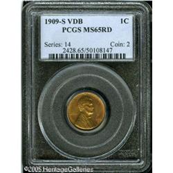 <B>1909-S VDB 1C MS65 Red PCGS.</B></I> Typically bold with radiant orange-gold surfaces. A carbon spot on the left wheat stalk is perhaps all that is keeping this beautiful '09-S VDB from a Premium Gem designation. Lot:5376