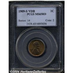 <B>1909-S VDB<1C> MS65 Red PCGS.</B></I> Fiery-red color and fully struck. Each side shows a couple of small flecks of carbon that limit the grade of this attractive, key date issue. <BR><BR><B>Important notice:</B> Heritage usually auctions material at the rate of 200-250 lots per hour. On some occasions eBay Live bid software or the Internet may not be able to keep up with the pace of the auction. We recommend placing a realistic absentee bid now as insurance to avoid disappointment. Occasionally the auctioneer may eliminate or reject an eBay Live bid, and the auctioneer may also reopen a lot after the close of the eBay live bidding (usually because we missed an audience bid), and may reject your bid even if it shows you as the winning bidder. By bidding via eBay Live, you agree that Heritage may award the lot to another bidder at its sole discretion under the circumstances described above or any other reasonable circumstances. Since eBay bids are not shown to us until we open the lot on the floor, we treat those bids just like floor bids. In most cases the floor responds before the eBay bid is presented to us, due to Internet lag time, so for consistency we have made it a policy that floor bids are always considered first over tie eBay live bids. Also please note that all Heritage lots purchased through eBay Live carry a 20% Buyer's Premium. Please make sure you read the Terms and Conditions before you bid. </span></font></tr></table></td></tr></table>