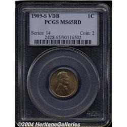 <B>1909-S VDB<1C> MS65 Red PCGS.</B></I> This is one of the great "story coins" in American numismatics and is always in demand, regardless of the buyer's specific numismatic interests. What coin collector would not want to own a brilliant Gem 'S VDB cent. Very sharp design elements and brilliant orange surfaces provide for exceptional aesthetic appeal. A few tiny spots and abrasions are present; however, none of these are of any significance. <BR><BR><B>Important notice:</B> Heritage usually auctions material at the rate of 200-250 lots per hour. On some occasions eBay Live bid software or the Internet may not be able to keep up with the pace of the auction. We recommend placing a realistic absentee bid now as insurance to avoid disappointment. Occasionally the auctioneer may eliminate or reject an eBay Live bid, and the auctioneer may also reopen a lot after the close of the eBay live bidding (usually because we missed an audience bid), and may reject your bid even if it shows you as the winning bidder. By bidding via eBay Live, you agree that Heritage may award the lot to another bidder at its sole discretion under the circumstances described above or any other reasonable circumstances. Since eBay bids are not shown to us until we open the lot on the floor, we treat those bids just like floor bids. In most cases the floor responds before the eBay bid is presented to us, due to Internet lag time, so for consistency we have made it a policy that floor bids are always considered first over tie eBay live bids. Also please note that all Heritage lots purchased through eBay Live carry a 20% Buyer's Premium. Please make sure you read the Terms and Conditions before you bid. </span></font></tr></table></td></tr></table>