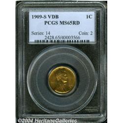 <B>1909-S VDB<1C> MS65 Red PCGS.</B></I> Boldly struck with rich golden color overall. A slight lime-green cast is seen as the coin is rotated under a light, as are remnants of a fingerprint on the reverse. A key date worthy of any Gem quality collection. <BR><BR><B>Important notice:</B> Heritage usually auctions material at the rate of 200-250 lots per hour. On some occasions eBay Live bid software or the Internet may not be able to keep up with the pace of the auction. We recommend placing a realistic absentee bid now as insurance to avoid disappointment. Occasionally the auctioneer may eliminate or reject an eBay Live bid, and the auctioneer may also reopen a lot after the close of the eBay live bidding (usually because we missed an audience bid), and may reject your bid even if it shows you as the winning bidder. By bidding via eBay Live, you agree that Heritage may award the lot to another bidder at its sole discretion under the circumstances described above or any other reasonable circumstances. Since eBay bids are not shown to us until we open the lot on the floor, we treat those bids just like floor bids. In most cases the floor responds before the eBay bid is presented to us, due to Internet lag time, so for consistency we have made it a policy that floor bids are always considered first over tie eBay live bids. Also please note that all Heritage lots purchased through eBay Live carry a 20% Buyer's Premium. Please make sure you read the Terms and Conditions before you bid. </span></font></tr></table></td></tr></table>