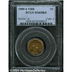 <B>1909-S VDB<1C> MS65 Red PCGS.</B></I> With only 484,000 pieces struck of the 1909-S VDB, this and the 1914-D stand as the two key issues in all grades in the early Lincoln cent series. The surfaces of this piece have a fine-grain, matte-like texture, and are bright and lustrous with swirling mint frost. Sharply defined throughout, with lovely crimson and lime-green toning, there are no surface blemishes on either obverse or reverse, and just one carbon spot is evident, on the reverse, on the upper left wheat head. <BR><BR><B>Important notice:</B> Heritage usually auctions material at the rate of 200-250 lots per hour. On some occasions eBay Live bid software or the Internet may not be able to keep up with the pace of the auction. We recommend placing a realistic absentee bid now as insurance to avoid disappointment. Occasionally the auctioneer may eliminate or reject an eBay Live bid, and the auctioneer may also reopen a lot after the close of the eBay live bidding (usually because we missed an audience bid), and may reject your bid even if it shows you as the winning bidder. By bidding via eBay Live, you agree that Heritage may award the lot to another bidder at its sole discretion under the circumstances described above or any other reasonable circumstances. Since eBay bids are not shown to us until we open the lot on the floor, we treat those bids just like floor bids. In most cases the floor responds before the eBay bid is presented to us, due to Internet lag time, so for consistency we have made it a policy that floor bids are always considered first over tie eBay live bids. Also please note that all Heritage lots purchased through eBay Live carry a 20% Buyer's Premium. Please make sure you read the Terms and Conditions before you bid.