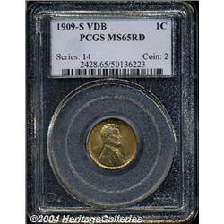<B>1909-S VDB<1C> MS65 Red PCGS.</B></I> Glowing mint red color is seen on each side with several small carbon flecks on each side. One in particular is noted at the base of the reverse. <BR><BR><B>Important notice:</B> Heritage usually auctions material at the rate of 200-250 lots per hour. On some occasions eBay Live bid software or the Internet may not be able to keep up with the pace of the auction. We recommend placing a realistic absentee bid now as insurance to avoid disappointment. Occasionally the auctioneer may eliminate or reject an eBay Live bid, and the auctioneer may also reopen a lot after the close of the eBay live bidding (usually because we missed an audience bid), and may reject your bid even if it shows you as the winning bidder. By bidding via eBay Live, you agree that Heritage may award the lot to another bidder at its sole discretion under the circumstances described above or any other reasonable circumstances. Since eBay bids are not shown to us until we open the lot on the floor, we treat those bids just like floor bids. In most cases the floor responds before the eBay bid is presented to us, due to Internet lag time, so for consistency we have made it a policy that floor bids are always considered first over tie eBay live bids. Also please note that all Heritage lots purchased through eBay Live carry a 20% Buyer's Premium. Please make sure you read the Terms and Conditions before you bid.