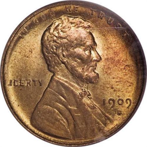 <B>1909-S VDB 1C MS65 Red PCGS.</B></I> Gorgeous orange-gold color adorns each side of this popular key date Lincoln, and wisps of pale red visit Lincoln's portrait and the upper right obverse field. A well directed strike brings out sharp definition on the design elements, including the bow tie, the V.D.B., and the lines and grains in the wheat ears. Well preserved throughout.<BR><BR><B>Coin Engraver:</B> Victor D. Brenner<BR><BR><b>Shipping:</b> Coins & Currency (<a target="_blank" href="http://www.heritageauctions.com/common/shipping.php">view shipping information</a>)