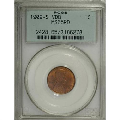 <B>1909-S VDB 1C MS65 Red PCGS.</B></I> A magnificent Red Gem example of this ever-popular first-year Lincoln key, crisply struck with slightly dusky reddish-orange surfaces that show glints of lighter color near the margins. The visual appeal is impressive, particularly the smoothness of the carefully preserved surfaces. An excellent piece that could serve as a cornerstone for a similarly graded date set.<BR><BR><B>Coin Engraver:</B> Victor D. Brenner<BR><BR><b>Shipping:</b> Coins & Currency (<a target="_blank" href="http://www.heritageauctions.com/common/shipping.php">view shipping information</a>)