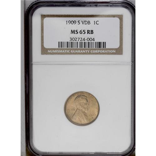 <B>1909-S VDB<1C> MS65 Red and Brown NGC.</B></I> A crisply struck and highly lustrous honey-gold Gem. The color has mellowed little over the years, and many collectors would consider the present piece as Red rather than Red and Brown. A few pinpoint carbon flecks on each side perhaps led to the conservative assessment by NGC.