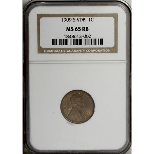 <B>1909-S VDB 1C MS65 Red and Brown NGC.</B></I> This Gem is a lovely example with attractively blended orange mint color and olive-brown toning on both sides. The surfaces are exceptional with only a few insignificant marks that are consistent with the grade. Not fully struck, yet still sharply detailed.<BR><BR><b>Shipping:</b> Coin/Currency (<a target="_blank" href="http://www.heritageauctions.com/common/shipping.php">view shipping information</a>)
