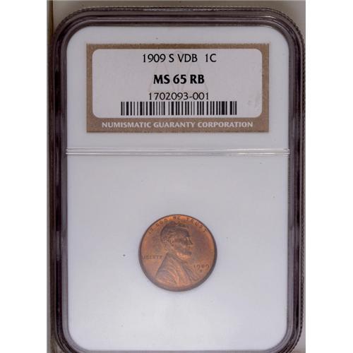 <B>1909-S VDB<1C> MS65 Red and Brown NGC.</B></I> Well struck, with lustrous reddish-golden and tan surfaces. A few small flecks are noted over each side, but these hardly distract. This popular key-date is always in demand.<BR><I>From The Key Date Coin Collection.</B></I>