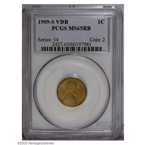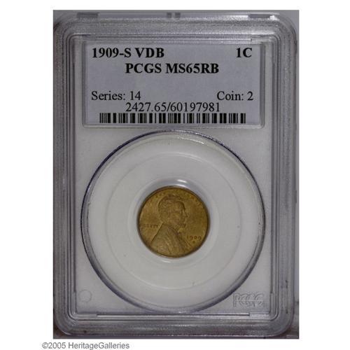 1909-S VDB 1C MS65 Red and Brown PCGS. A lovely, golde 1909-S VDB[1C] MS65 Red and Brown PCGS.