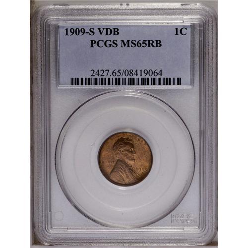 <B>1909-S VDB<1C> MS65 Red and Brown PCGS.</B></I> A lustrous and frosty Gem with fully brilliant orange-brown surfaces. Slight mellowing of the mint color as well as a few tiny specks keep this out of the full Red category. Still and all, this is an important and highly desirable cent. <BR><BR><B>Important notice:</B> Heritage usually auctions material at the rate of 200-250 lots per hour. On some occasions eBay Live bid software or the Internet may not be able to keep up with the pace of the auction. We recommend placing a realistic absentee bid now as insurance to avoid disappointment. Occasionally the auctioneer may eliminate or reject an eBay Live bid, and the auctioneer may also reopen a lot after the close of the eBay live bidding (usually because we missed an audience bid), and may reject your bid even if it shows you as the winning bidder. By bidding via eBay Live, you agree that Heritage may award the lot to another bidder at its sole discretion under the circumstances described above or any other reasonable circumstances. Since eBay bids are not shown to us until we open the lot on the floor, we treat those bids just like floor bids. In most cases the floor responds before the eBay bid is presented to us, due to Internet lag time, so for consistency we have made it a policy that floor bids are always considered first over tie eBay live bids. Also please note that all Heritage lots purchased through eBay Live carry a 20% Buyer's Premium. Please make sure you read the Terms and Conditions before you bid. This lot is being auctioned in conjunction with a live floor auction by Heritage Galleries & Auctioneers. All final auction and invoice information will be supplied by Heritage Galleries & Auctioneers, and all other information should be considered preliminary. Lot:595 <BR><BR><B>Winning Notification and Billing:</B> After the FINAL session in this auction is complete, Heritage will send e-mail and snail mail invoices. This process normally takes several days. All final auction and invoice information will be supplied by Heritage Galleries & Auctioneers, and all other information should be considered preliminary. <BR><BR>This auction will be conducted on a live auction floor and over the Internet through eBay Live. If you choose to place an absentee bid, please take a moment to <font color='#0000ff'><u><a href='http://pages.ebay.com/liveauctions/help/before/laabsentee.html'>learn how eBay Live absentee bidding works</a></u></font><font color='#000000'>