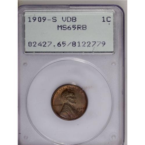 <B>1909-S VDB<1C> MS65 Red and Brown PCGS.</B></I> Fire-red and olive-green alternate across this lustrous and unblemished Gem. A penetratingly struck and original example of this famous and perpetually popular low mintage issue. Encapsulated in a small-sized, first generation holder.