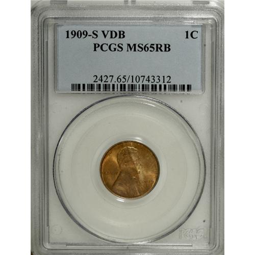 <B>1909-S VDB 1C MS65 Red and Brown PCGS.</B></I> Well struck with generous mint luster and a pleasing frosty sheen over both sides. The coloration includes a variegated mix of reddish-gold and mint-green patina. The surfaces are essentially unabraded but a few minor carbon specks are evident on the obverse, mainly near the periphery. Victor D. Brenner's initials were quickly removed from the lower reverse edge of the Lincoln cent design, soon after the first Lincoln cents were distributed to the public, creating this ever-popular key issue in the series.<BR><I>From The Lanterman's Mill Collection, Part Two.</B></I><BR><BR><b>Shipping:</b> Coins & Currency (<a target="_blank" href="http://www.heritageauctions.com/common/shipping.php">view shipping information</a>)