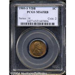 <B>1909-S VDB<1C> MS65 Red and Brown PCGS.</B></I> Some subdued red fading to medium tan, particularly on the reverse. A fairly well struck example of this key date in the Lincoln cent series that would fit nicely in a Gem set. <BR><BR><B>Important notice:</B> Heritage usually auctions material at the rate of 200-250 lots per hour. On some occasions eBay Live bid software or the Internet may not be able to keep up with the pace of the auction. We recommend placing a realistic absentee bid now as insurance to avoid disappointment. Occasionally the auctioneer may eliminate or reject an eBay Live bid, and the auctioneer may also reopen a lot after the close of the eBay live bidding (usually because we missed an audience bid), and may reject your bid even if it shows you as the winning bidder. By bidding via eBay Live, you agree that Heritage may award the lot to another bidder at its sole discretion under the circumstances described above or any other reasonable circumstances. Since eBay bids are not shown to us until we open the lot on the floor, we treat those bids just like floor bids. In most cases the floor responds before the eBay bid is presented to us, due to Internet lag time, so for consistency we have made it a policy that floor bids are always considered first over tie eBay live bids. Also please note that all Heritage lots purchased through eBay Live carry a 20% Buyer's Premium. Please make sure you read the Terms and Conditions before you bid. </span></font></tr></table></td></tr></table>