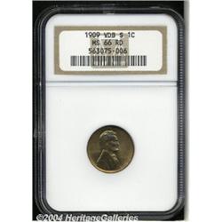 <B>1909-S VDB<1C> MS66 Red NGC.</B></I> Choice and better '09-S VDB Lincolns follow the pattern of many first year issues, they are obtainable without too much difficulty up to and including the MS65 tier due to hoards being put away at the time of production. However on this numismatically famous issue, the relative abundance begins to evaporate quickly at the MS66 grade level. The golden-orange surfaces on this unequivocal Gem are bursting with full, frosty textured luster and would be difficult to improve upon. Well defined throughout with one tiny contact mark under the first U of UNUM. Population: 144 in 66, 9 finer (7/04). <BR><BR><B>Important notice:</B> Heritage usually auctions material at the rate of 200-250 lots per hour. On some occasions eBay Live bid software or the Internet may not be able to keep up with the pace of the auction. We recommend placing a realistic absentee bid now as insurance to avoid disappointment. Occasionally the auctioneer may eliminate or reject an eBay Live bid, and the auctioneer may also reopen a lot after the close of the eBay live bidding (usually because we missed an audience bid), and may reject your bid even if it shows you as the winning bidder. By bidding via eBay Live, you agree that Heritage may award the lot to another bidder at its sole discretion under the circumstances described above or any other reasonable circumstances. Since eBay bids are not shown to us until we open the lot on the floor, we treat those bids just like floor bids. In most cases the floor responds before the eBay bid is presented to us, due to Internet lag time, so for consistency we have made it a policy that floor bids are always considered first over tie eBay live bids. Also please note that all Heritage lots purchased through eBay Live carry a 20% Buyer's Premium. Please make sure you read the Terms and Conditions before you bid. </span></font></tr></table></td></tr></table>