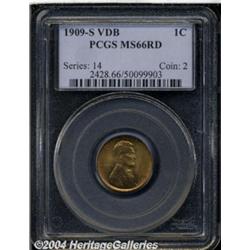 <B>1909-S VDB<1C> MS66 Red PCGS.</B></I> The orange-gold and crimson color is bright and consistent. A well struck and lustrous Gem that has carefully preserved surfaces. Each side has a couple of tiny contact marks that do not distract. The most famous of all Lincoln Cent issues, with its mintage of 484,000 pieces fixed in the memory of all dedicated collectors of the series. The eternal demand for Gems of this coveted rarity has been further increased by the formation of PCGS registry sets. <BR><BR><B>Important notice:</B> Heritage usually auctions material at the rate of 200-250 lots per hour. On some occasions eBay Live bid software or the Internet may not be able to keep up with the pace of the auction. We recommend placing a realistic absentee bid now as insurance to avoid disappointment. Occasionally the auctioneer may eliminate or reject an eBay Live bid, and the auctioneer may also reopen a lot after the close of the eBay live bidding (usually because we missed an audience bid), and may reject your bid even if it shows you as the winning bidder. By bidding via eBay Live, you agree that Heritage may award the lot to another bidder at its sole discretion under the circumstances described above or any other reasonable circumstances. Since eBay bids are not shown to us until we open the lot on the floor, we treat those bids just like floor bids. In most cases the floor responds before the eBay bid is presented to us, due to Internet lag time, so for consistency we have made it a policy that floor bids are always considered first over tie eBay live bids. Also please note that all Heritage lots purchased through eBay Live carry a 20% Buyer's Premium. Please make sure you read the Terms and Conditions before you bid. </span></font></tr></table></td></tr></table>