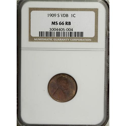 <B>1909-S VDB 1C MS66 Red and Brown NGC.</B></I> Mostly still red, but mellowed on a portion of each face to magenta and light brown. Those surfaces are nearly pristine, however, fully meriting the Premium Gem grade, and the full strike, with bold details on Lincoln's coat and figure, complete the eye appeal.<BR><BR><b>Shipping:</b> Coin/Currency (<a target="_blank" href="http://www.heritageauctions.com/common/shipping.php">view shipping information</a>)