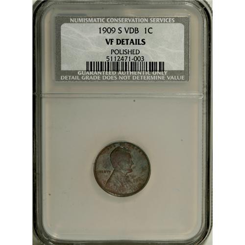 1909-S VDB 1C --Polished--NCS. VF Details. NGC Cens