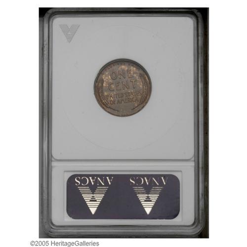 <B>1909-S VDB<1C>--Recolored--ANACS. AU Details, Net AU50.</B></I> A bold example of this popular low mintage issue. A wispy slide mark in front of the nose provides the sole contact. Unnaturally luminous gold hues occupy most of the obverse, while blended olive-brown and maroon tones consume the reverse and the lower obverse.