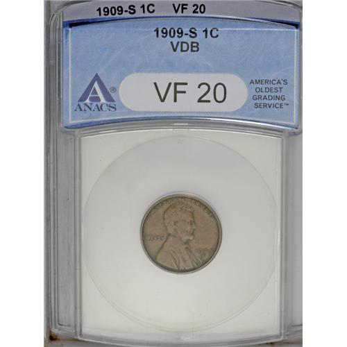1909-S VDB 1C VF20 ANACS. As the key to one of the mos