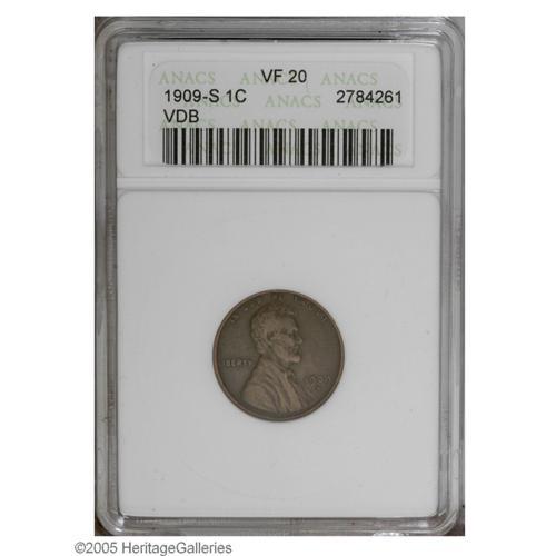 1909-S VDB 1C VF20 ANACS. One of the most famous key d 1909-S VDB[1C] VF20 ANACS.