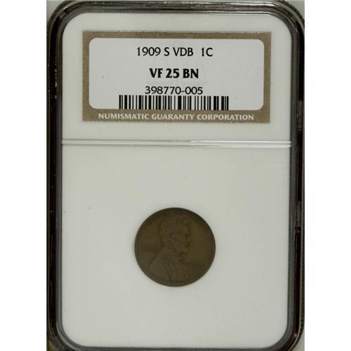 <B>1909-S VDB 1C VF25 NGC.</B></I> This deep chocolate-brown key date cent has complete lines within the wheat ears, and the fields are pleasantly unperturbed given 35 points of wear. The VDB initials are sharp, more so than on some Mint State examples.<BR><BR><b>Shipping:</b> Coin/Currency (<a target="_blank" href="http://www.heritageauctions.com/common/shipping.php">view shipping information</a>)
