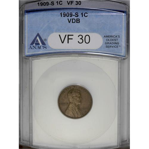 1909-S VDB 1C VF30 ANACS. An elegant mid-range example