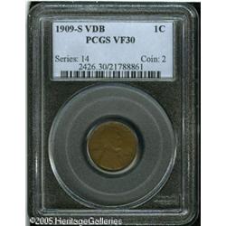 <B>1909-S VDB 1C VF30 PCGS.</B></I> An evenly worn and attractive representative, for the grade, with unmarked saddle-brown surfaces and good details. Lot:5364