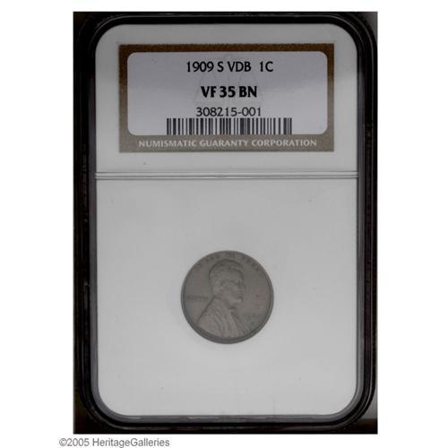 1909-S VDB 1C VF35 NGC. A middle grade golden-brown ex 1909-S VDB[1C] VF35 NGC.