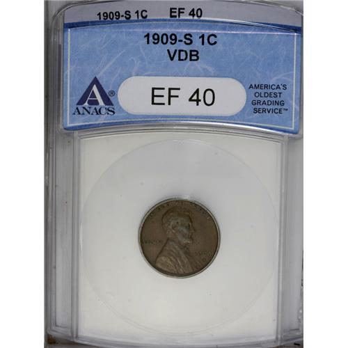 1909-S VDB 1C XF40 ANACS. A smooth, chocolate-brown ex