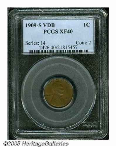 <B>1909-S VDB<1C> XF40 PCGS.</B></I> A chocolate-brown key date Cent, the surfaces are smooth and the reverse displays little wear. A minor tick above the 1 in the date is barely worthy of mention.