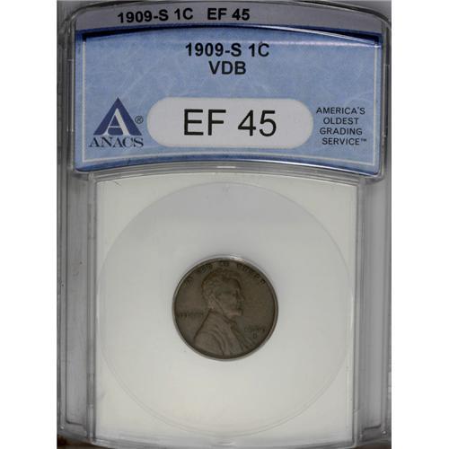 1909-S VDB 1C XF45 ANACS. An attractive piece, evenly