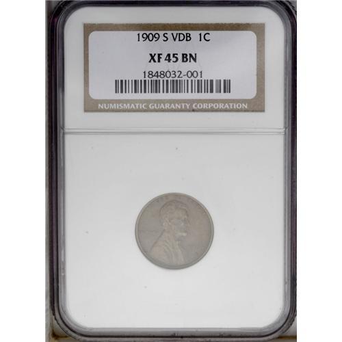 1909-S VDB 1C XF45 NGC. Medium violet-brown surfaces w 1909-S VDB[1C] XF45 NGC.
