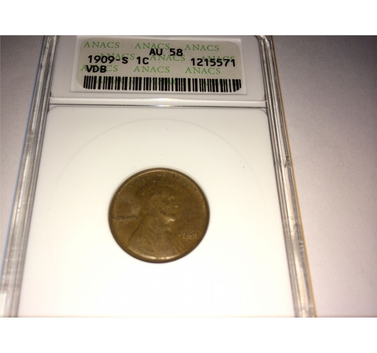 1909-S VDB LINCOLN CENT AU-58 GRADED
