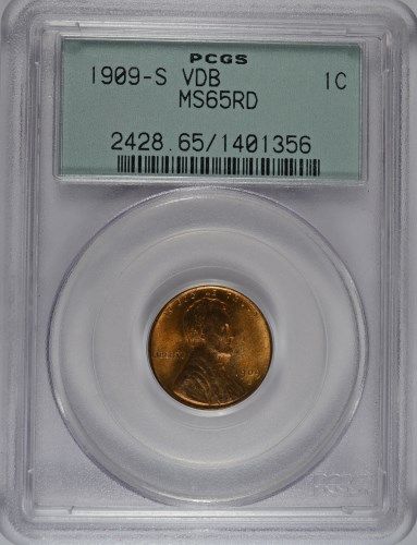 1909-S VDB LINCOLN CENT, PCGS MS-65 RED GREEN LABEL GEMMY,