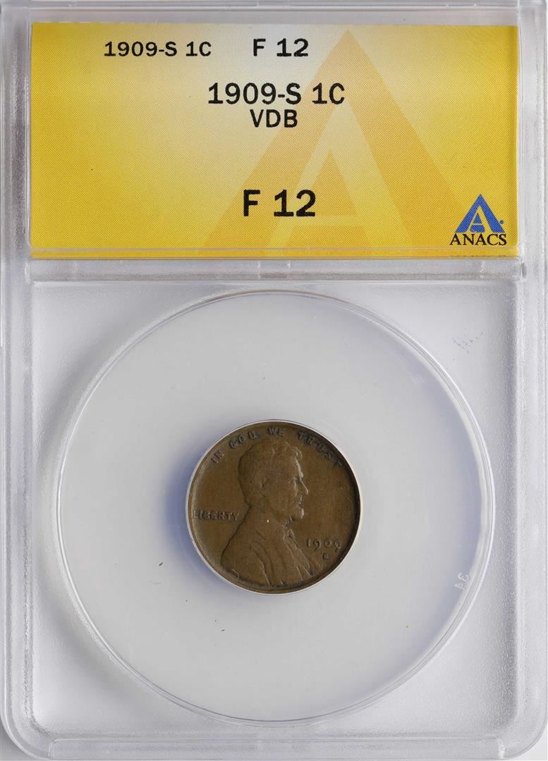 One 1909-S VDB Lincoln Wheat Cent Coin ANACS F12. ANACS Appraised.