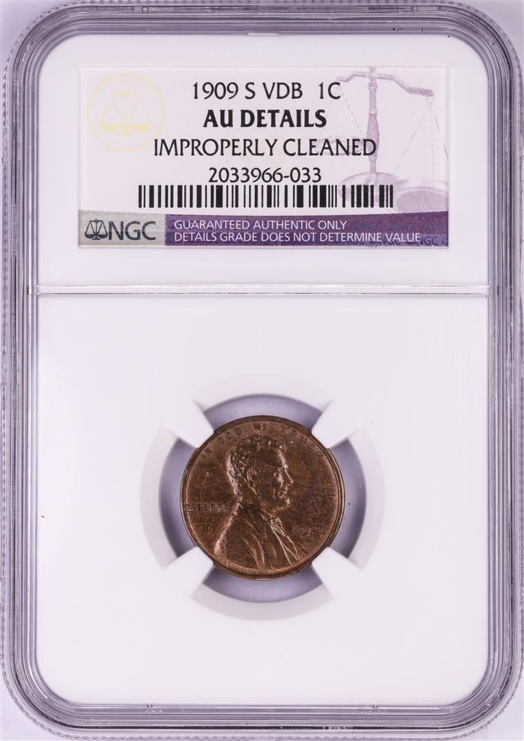 One 1909-S VDB Lincoln Wheat Cent Coin NGC AU Details. NGC Certified.