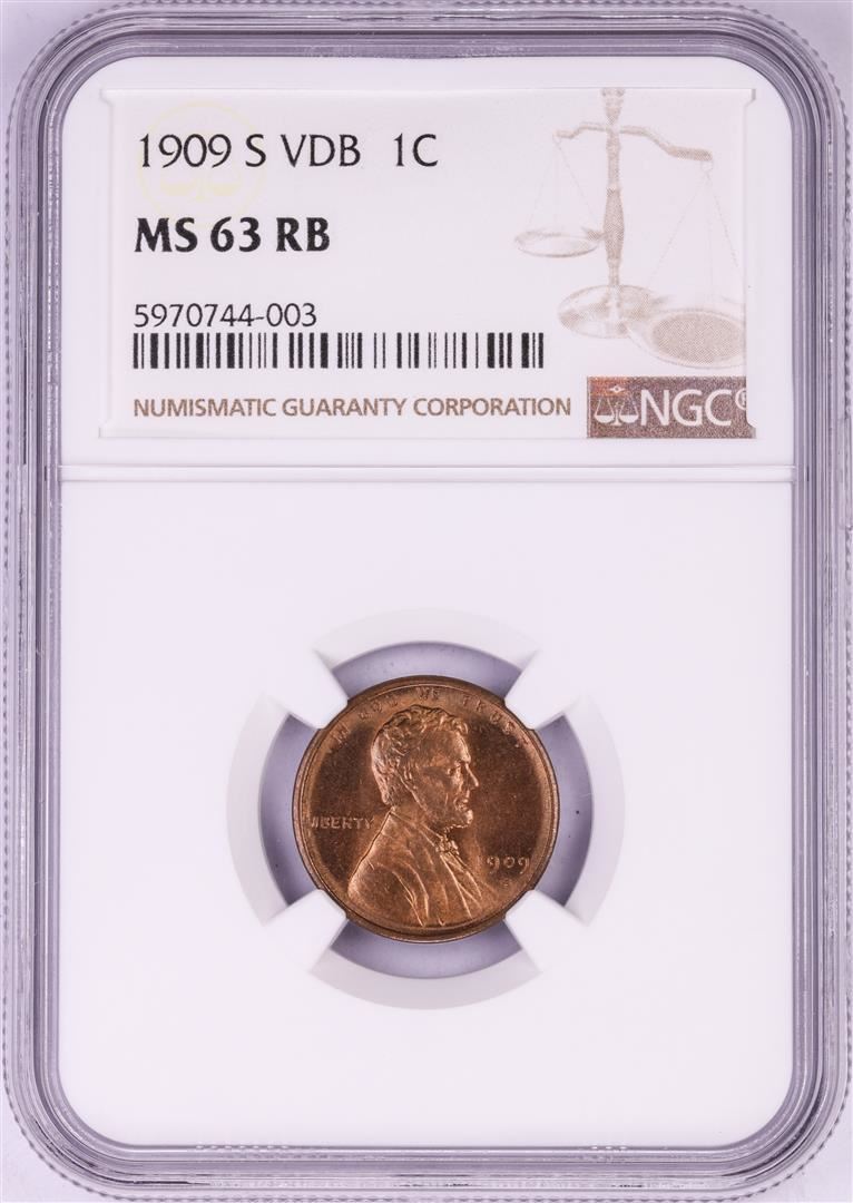 One 1909-S VDB Lincoln Wheat Cent Coin NGC MS63RB. NGC Certified.