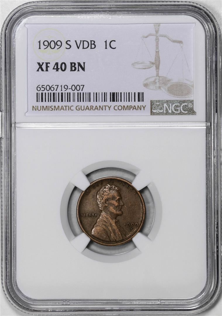 One 1909-S VDB Lincoln Wheat Cent Coin NGC XF40BN. NGC Certified.