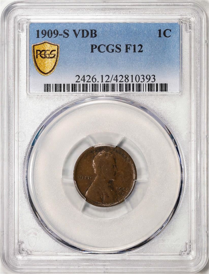 One 1909-S VDB Lincoln Wheat Cent Coin PCGS F12. PCGS Graded.