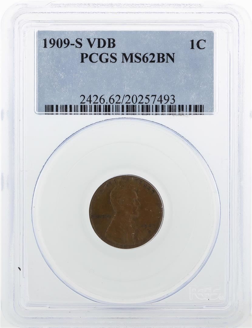 One 1909-S VDB Lincoln Wheat Cent Coin PCGS MS62BN. PCGS Graded.