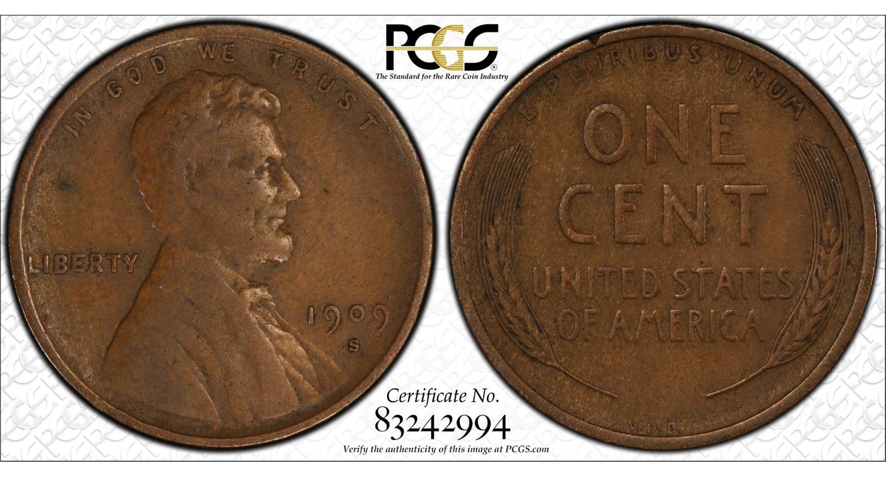 One 1909-S VDB Lincoln Wheat Cent Coin PCGS VF30. PCGS Graded.