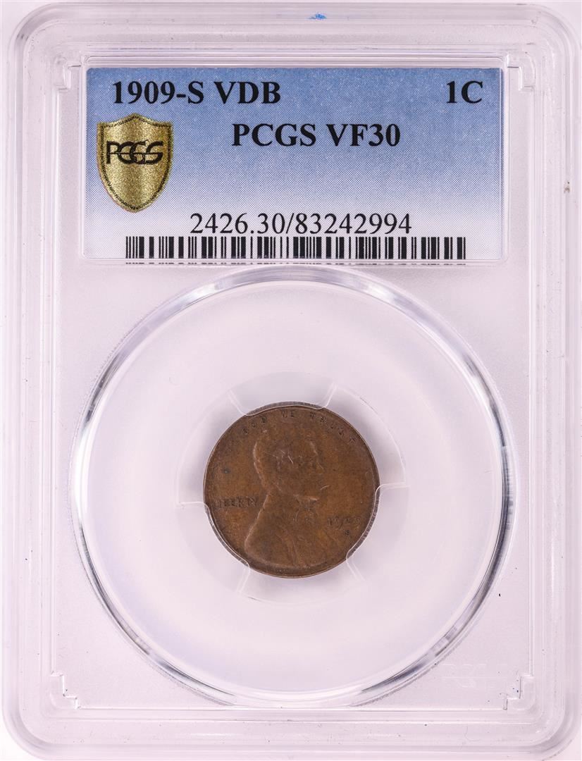 One 1909-S VDB Lincoln Wheat Cent Coin PCGS VF30. PCGS Graded.