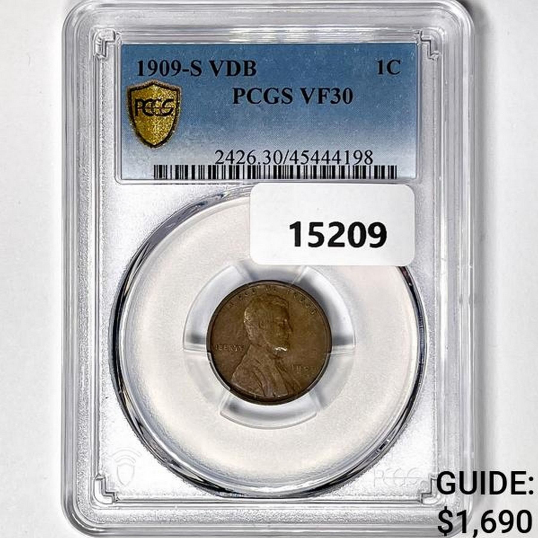 1909-S VDB Wheat Cent PCGS VF30