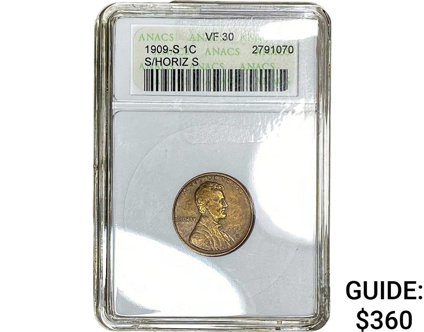 1909-S Wheat Cent ANACS VF30